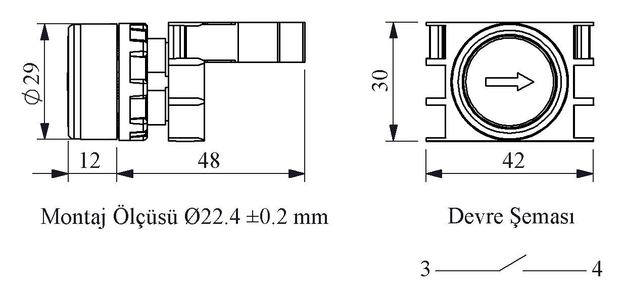 B Series Plastic 1NO Spring Flush Green Vertical (Arrow) Sign Marked 22 mm Control Unit