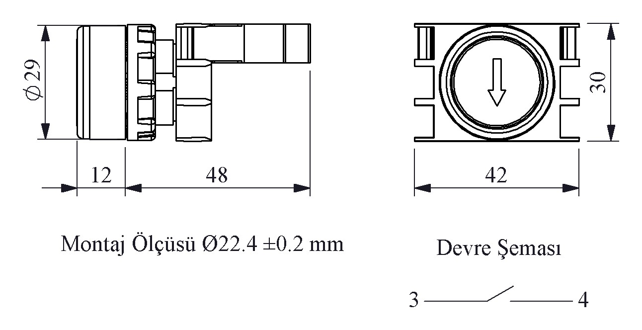B Series Plastic 1NO Spring Flush Green Horizontal (Arrow) Sign Marked 22 mm Control Unit