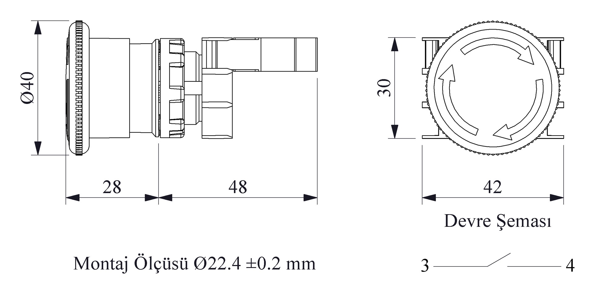 B Series Plastic 1NO Emergency 40 mm Turn to Release Red 22 mm Control Unit