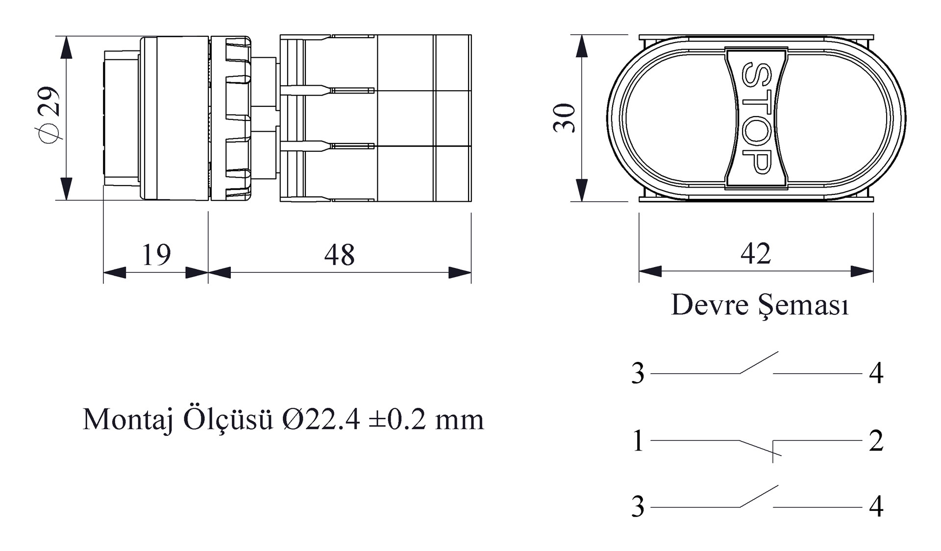 B Series Plastic 1NO+1NC+1NO Triple Single Extended Stop White-White 22 mm Control Unit