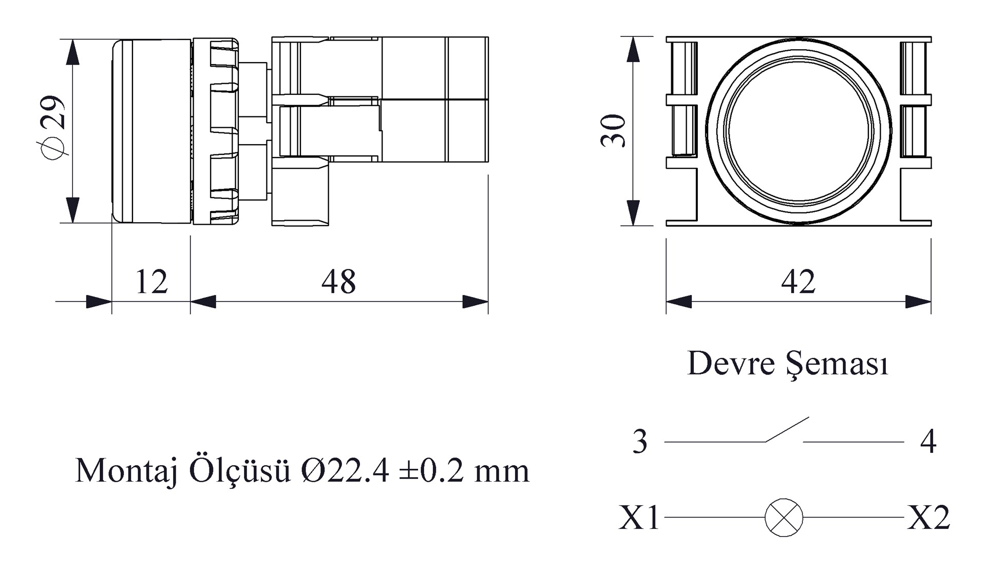 B Series Plastic with Ba9S Lampholder 1NO Spring Flush Black 22 mm Control Unit