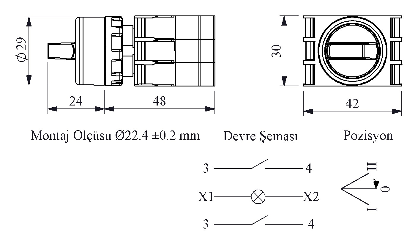 B Series Plastic with Ba9S Lampholder 2NO (II-0-I) 60° Selector Single Spring Return Illuminated Green 22 mm Control Unit