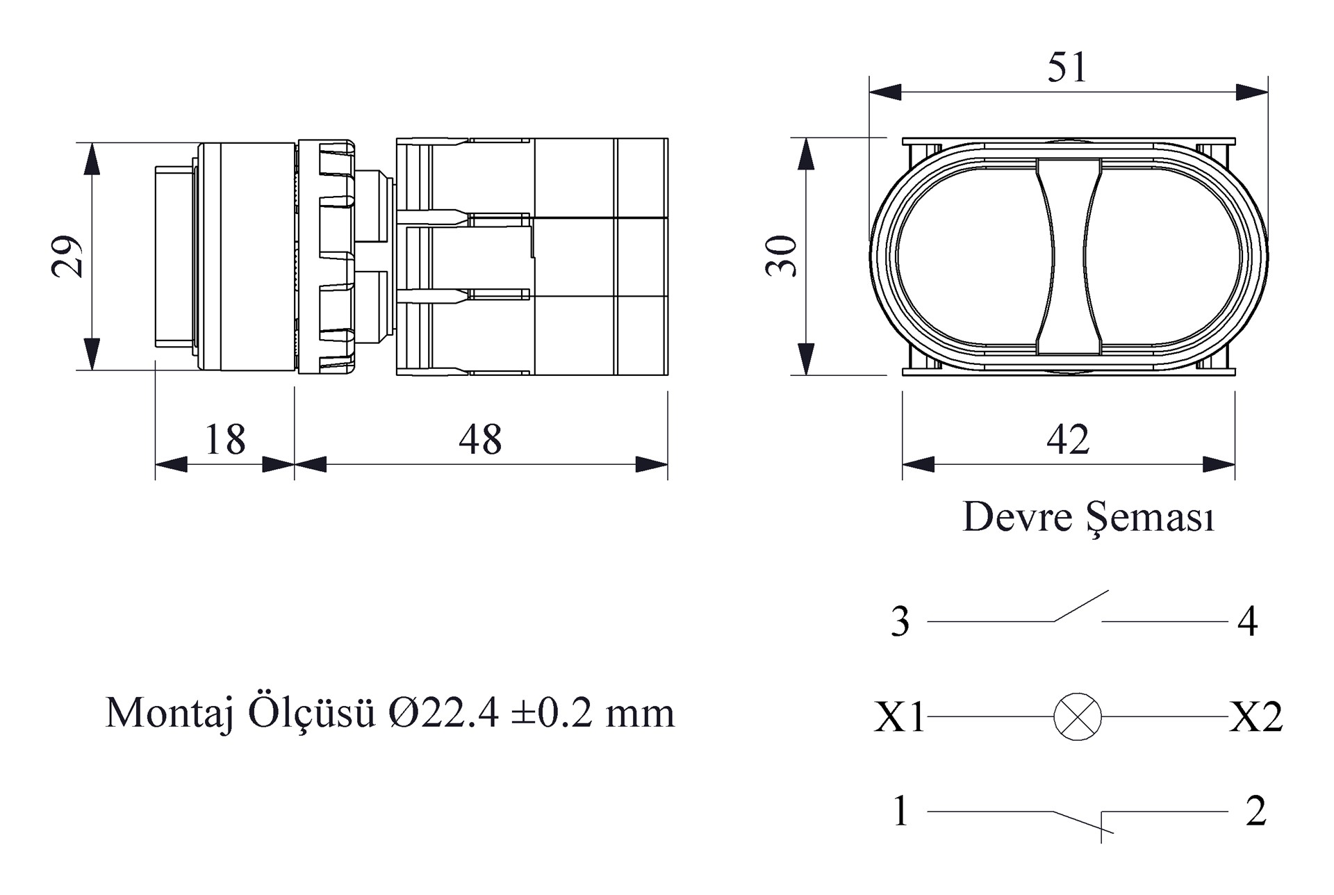 B Series Plastic with Ba9S Lampholder 1NO+1NC Double Single Extended Red-Green 22 mm Control Unit