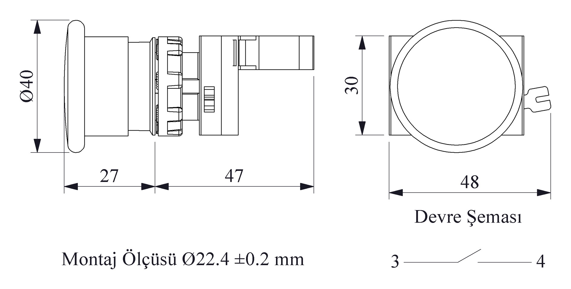 CM Series Metal 1NO Spring 40 mm Mushroom Green 22 mm Control Unit