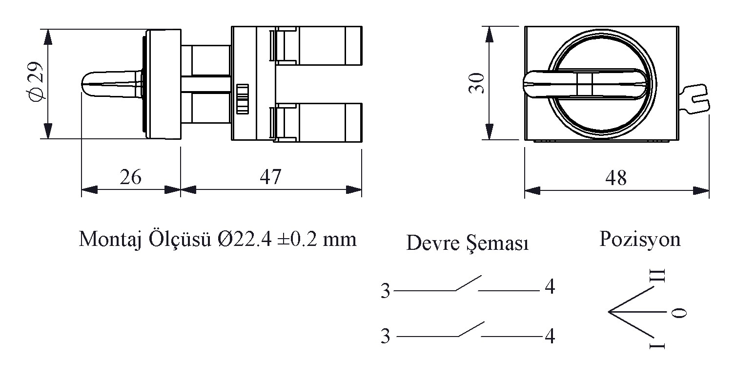 CP Series Plastic 2NO (II-0-I) 60° Selector Stay Put 22 mm Control Unit