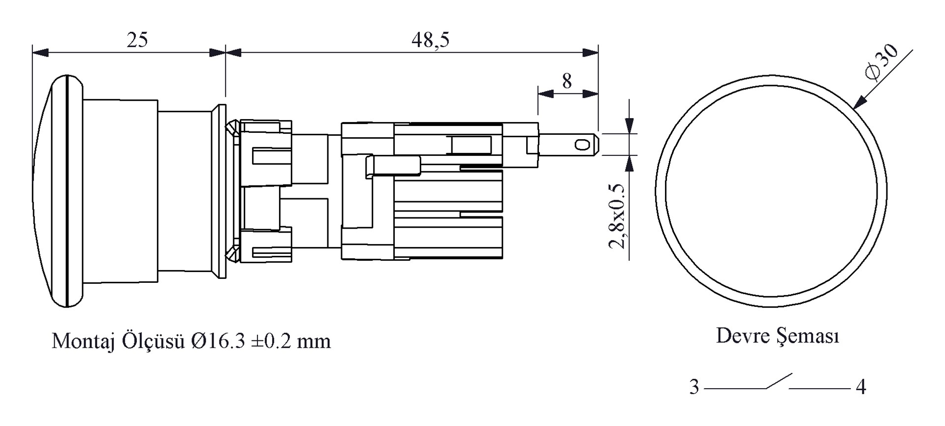 D Series Plastic 1NO Spring Round 30 mm Mushroom Blue 16 mm Control Unit