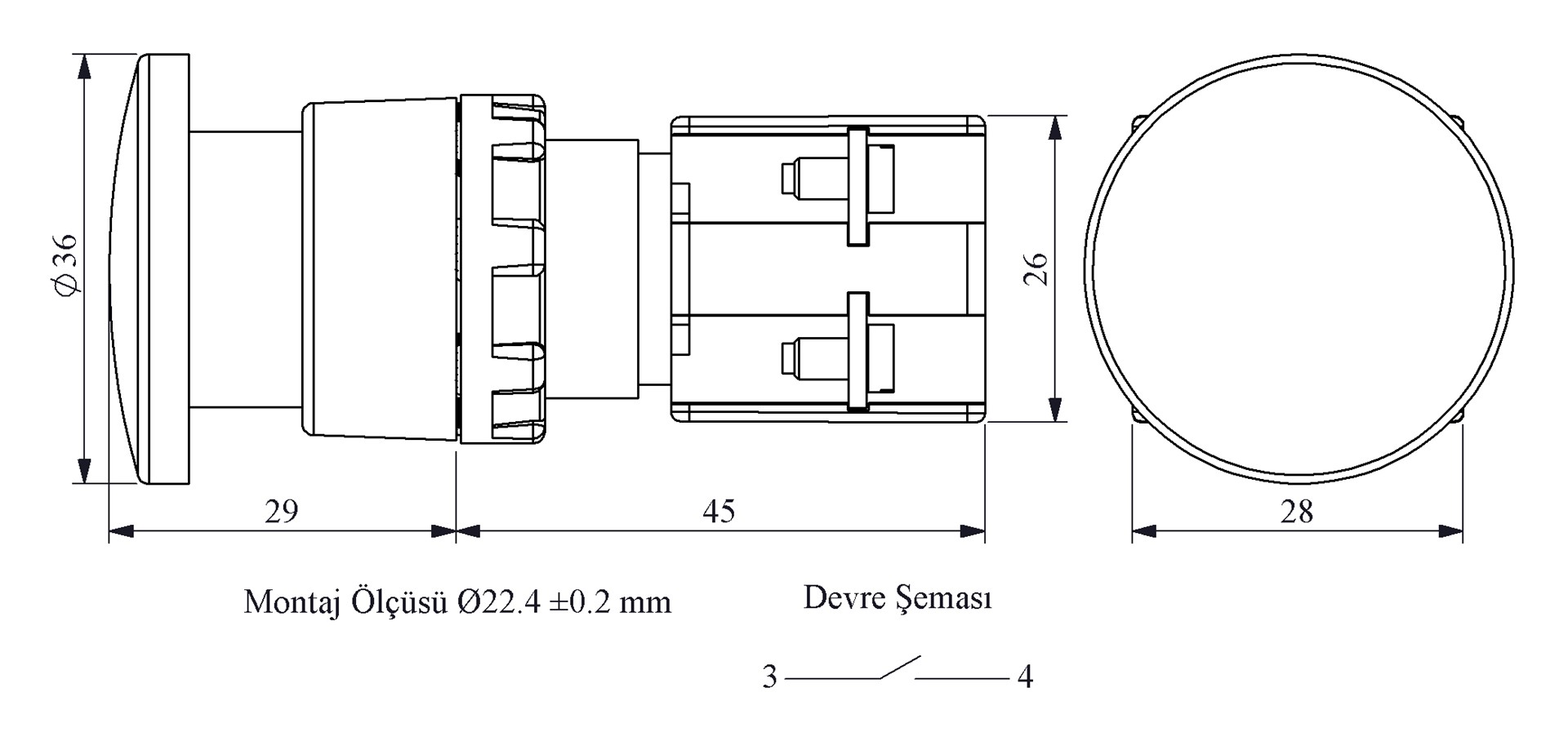 KB Series Plastic 1NO Spring 40 mm Mushroom Red 22 mm Control Unit