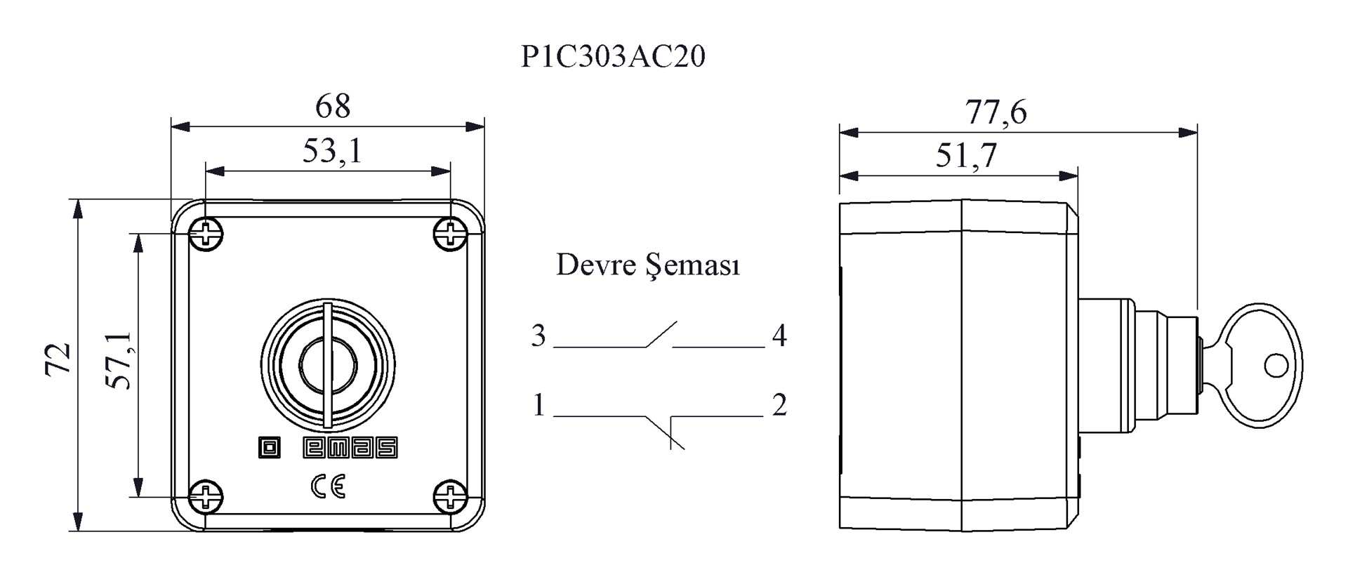 P Series Plastic 1 Hole BDAC20 + C3BK (NO) + C4BK (NC) Grey-Black Control Box
