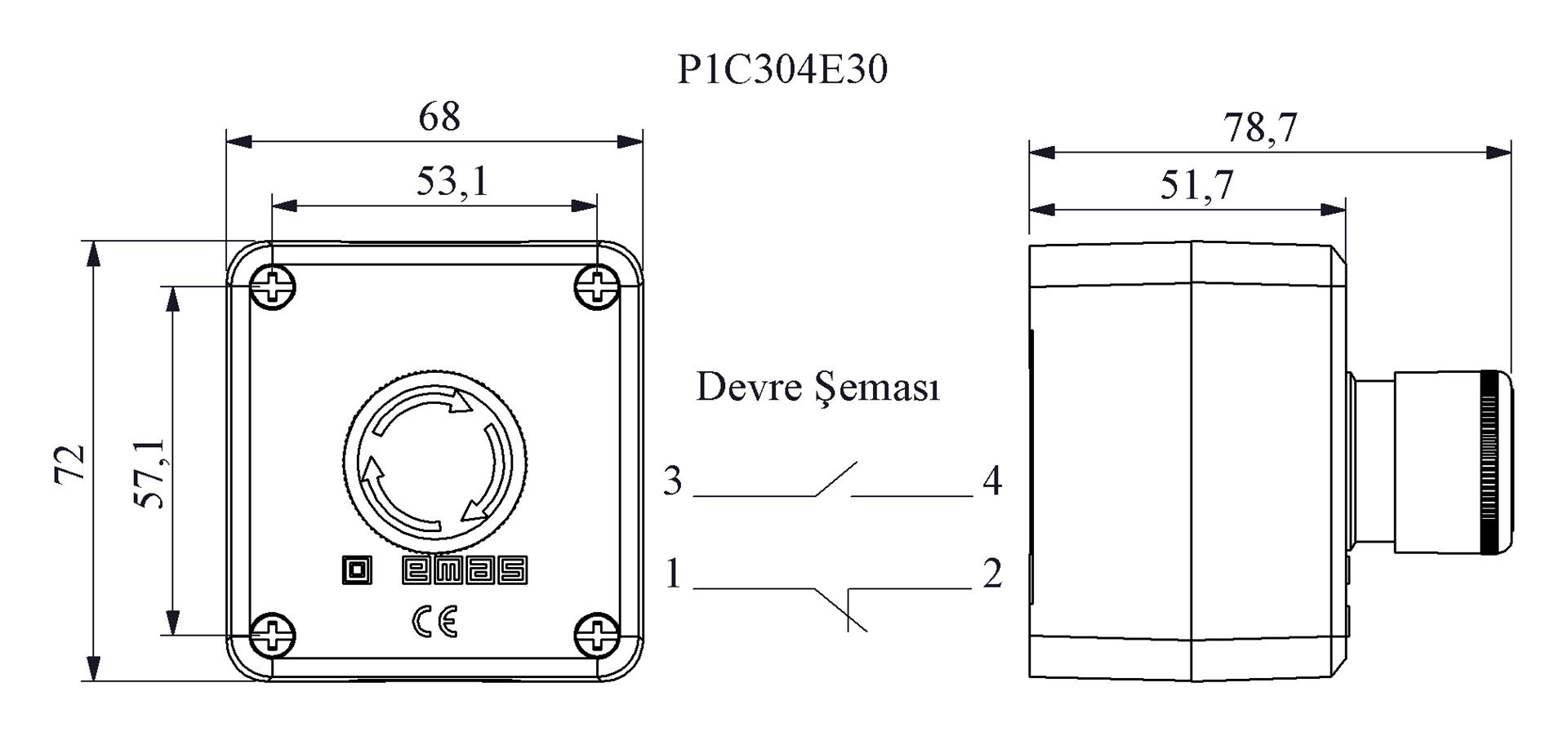 P Series Plastic 1 Hole BDE30 + C3BK (NO) + C4BK (NC) Grey-Black Control Box