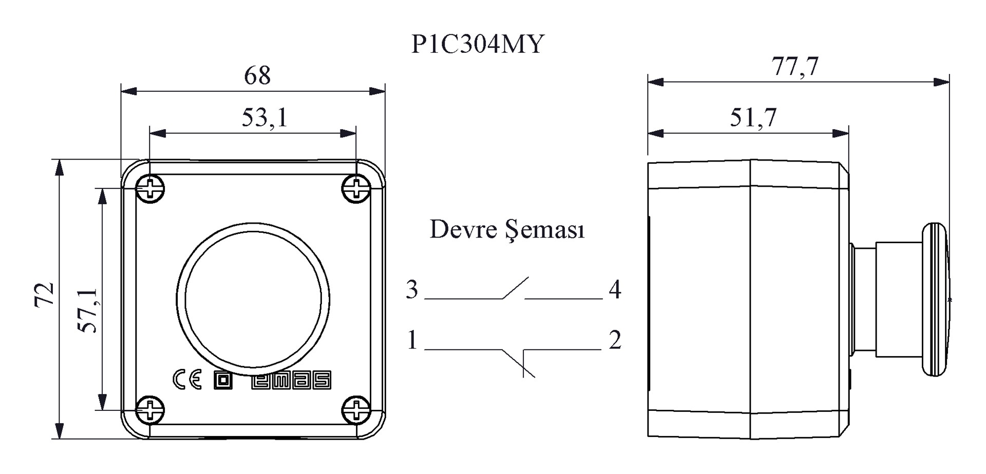 P Series Plastic 1 Hole BDMY + C3BK (NO) + C4BK (NC) Black-Grey Control Box