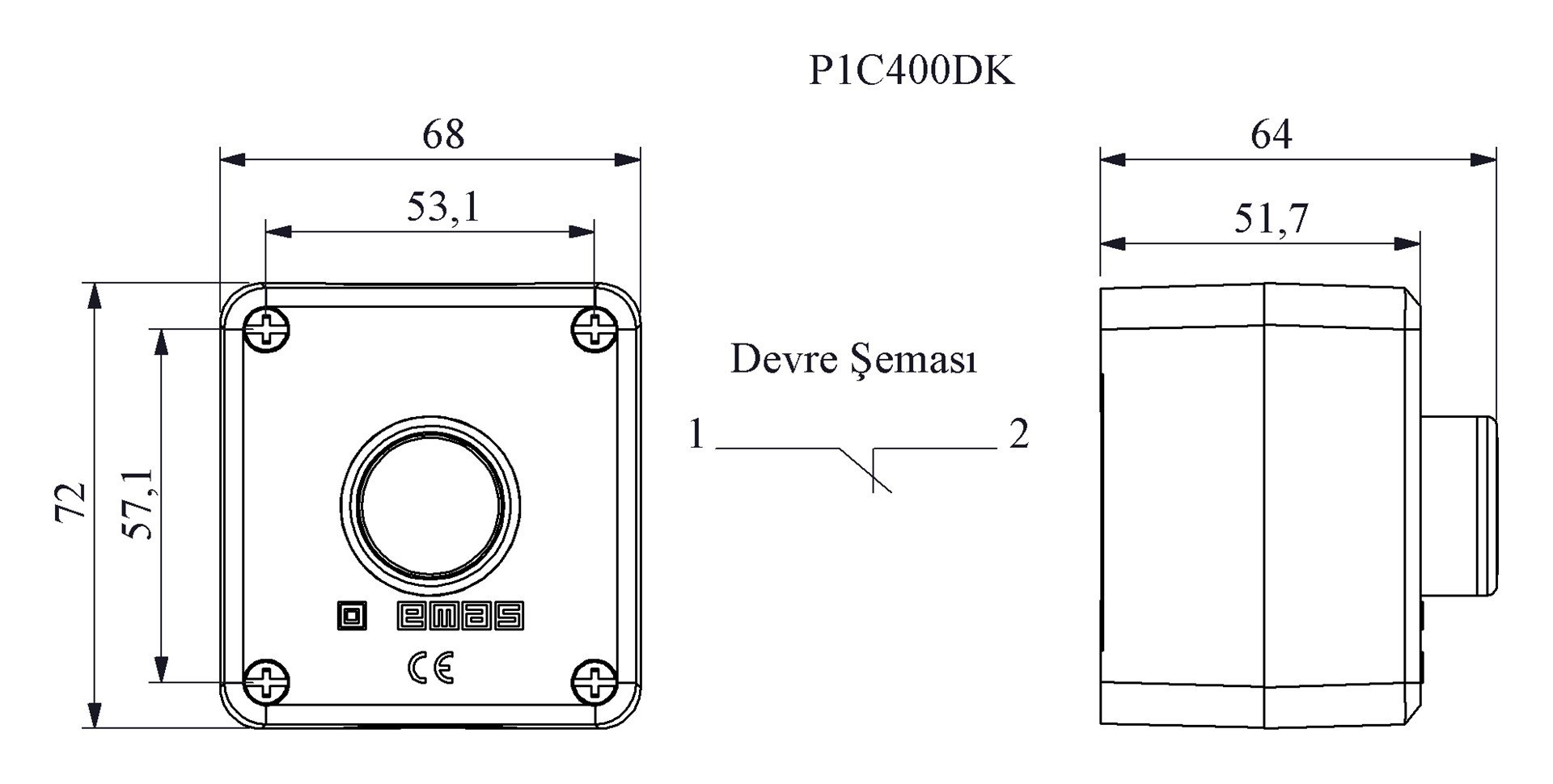 P Series Plastic 1 Hole BDDK + C4BK (NC) Black-Grey Control Box
