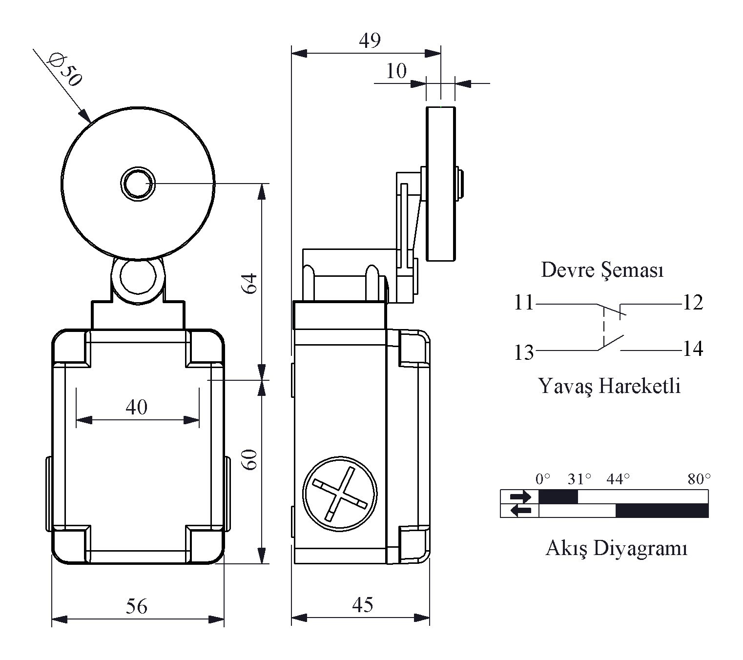 L1 Metal Body 50 mm Rubber Roller Arm Slow Action 1NO+1NC Limit Switch