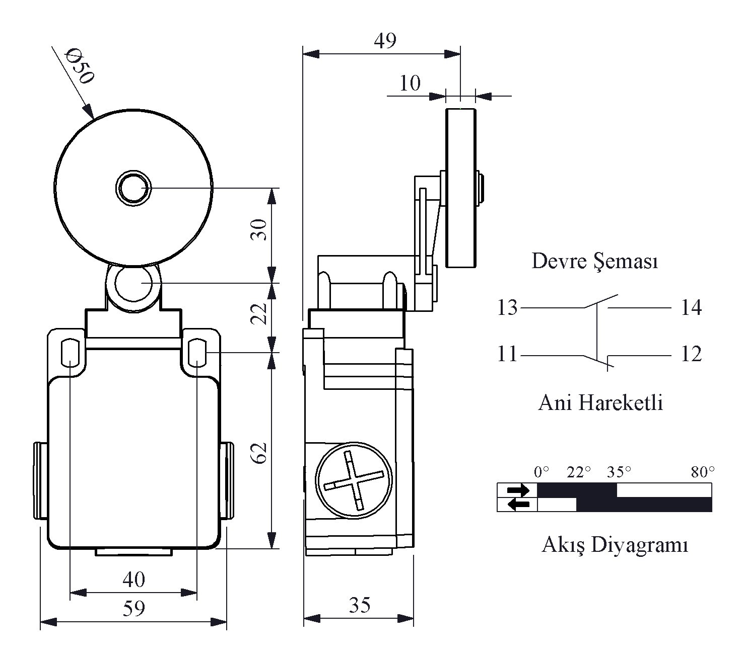L2 Metal Body 50 mm Rubber Roller Arm Snap Action 1NO+1NC Limit Switch