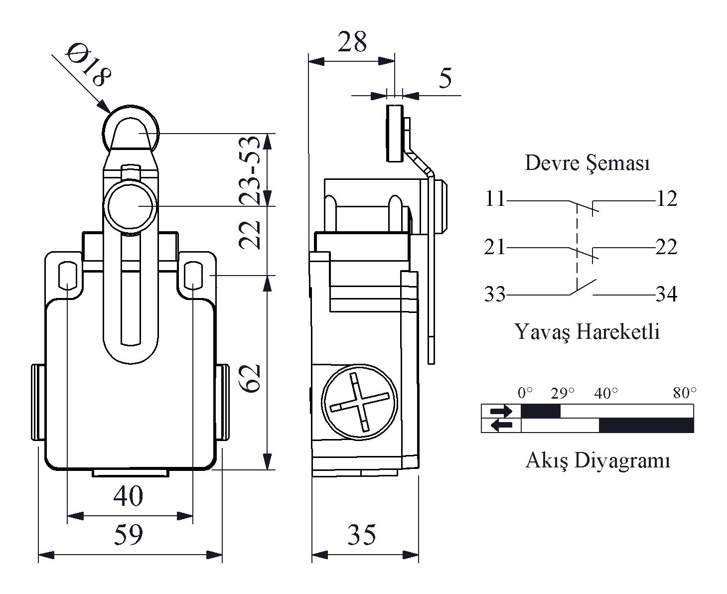 L2 Metal Body 18 mm Plastic Adjustable Roller Arm Slow Action 1NO+2NC Limit Switch