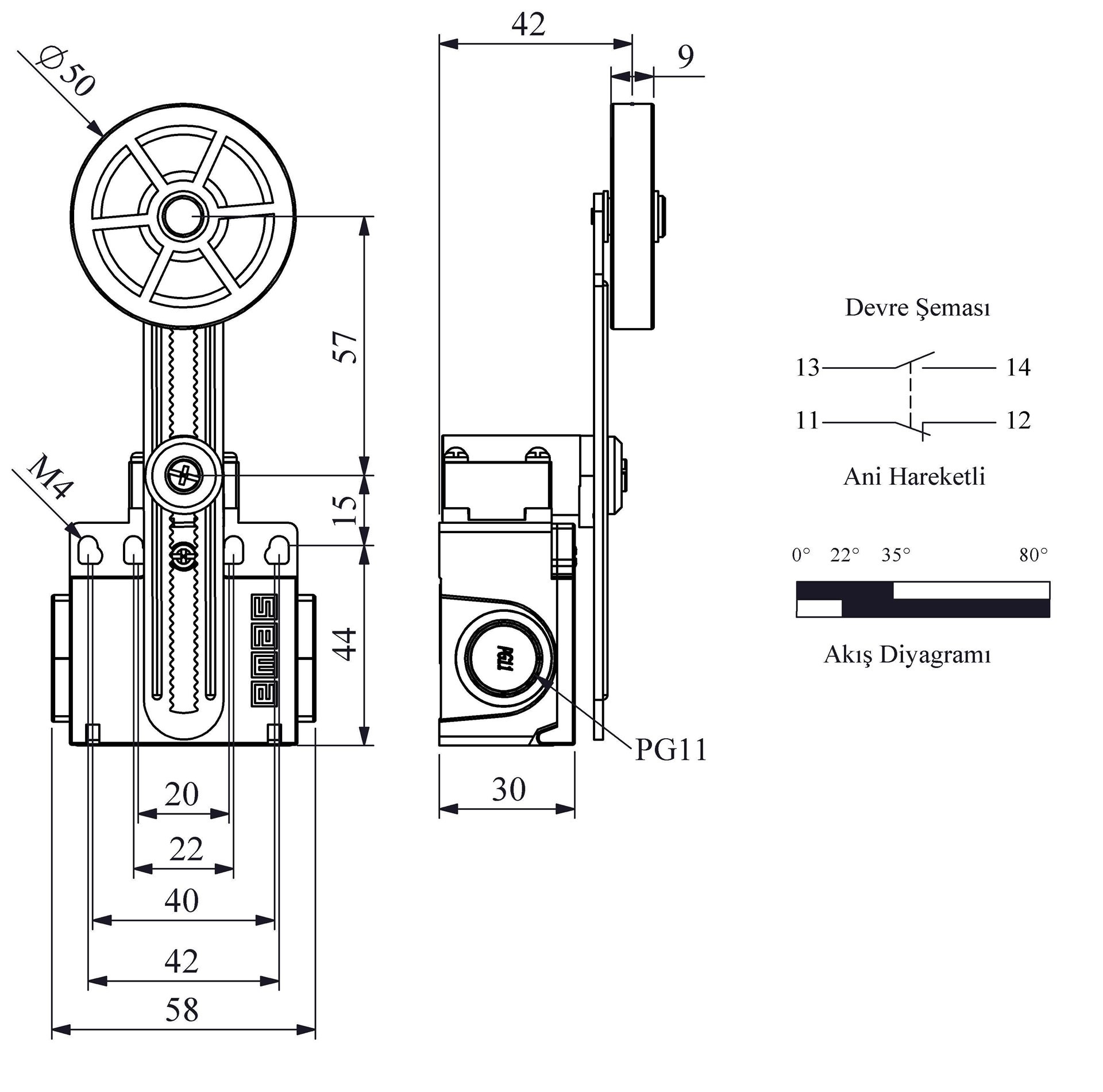 L22 Plastic Body 50 mm Rubber Adjustable Roller Arm Snap Action 1NO+1NC Limit Switch