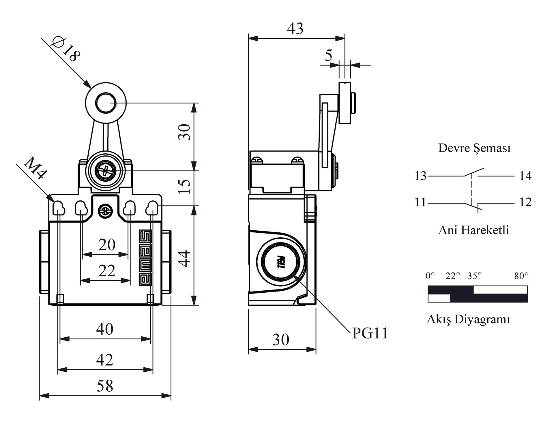 L22 Plastic Body 18 mm Metal Roller Arm Snap Action 1NO+1NC Limit Switch