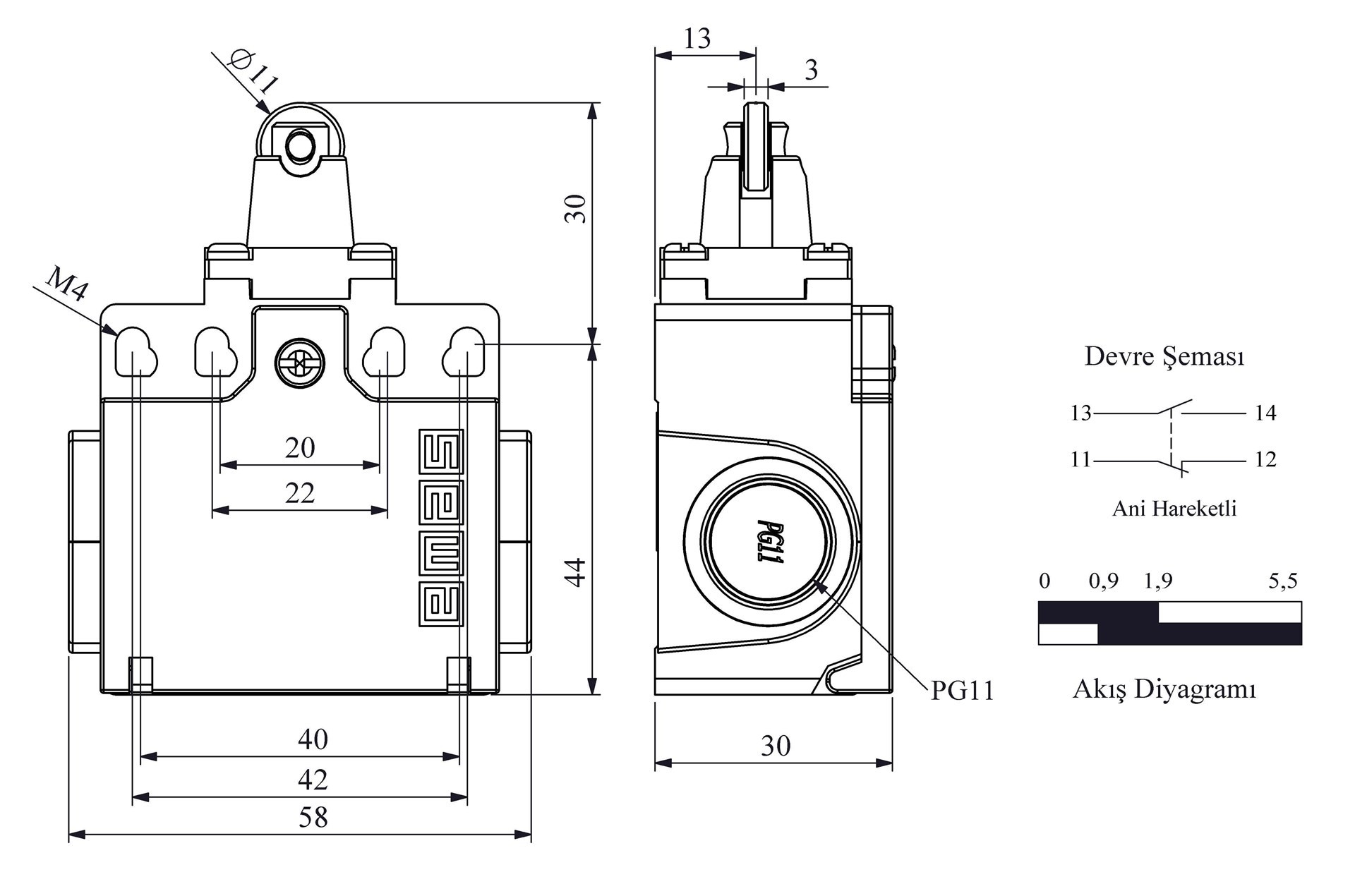L22 Plastic Body 11 mm Metal Roller Plunger Snap Action 1NO+1NC Limit Switch