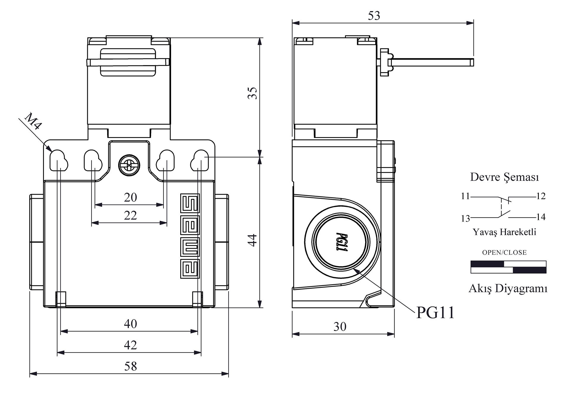 L22 Plastic Body Metal With Flat Key Safety Switch Slow Action 1NO+1NC Limit Switch