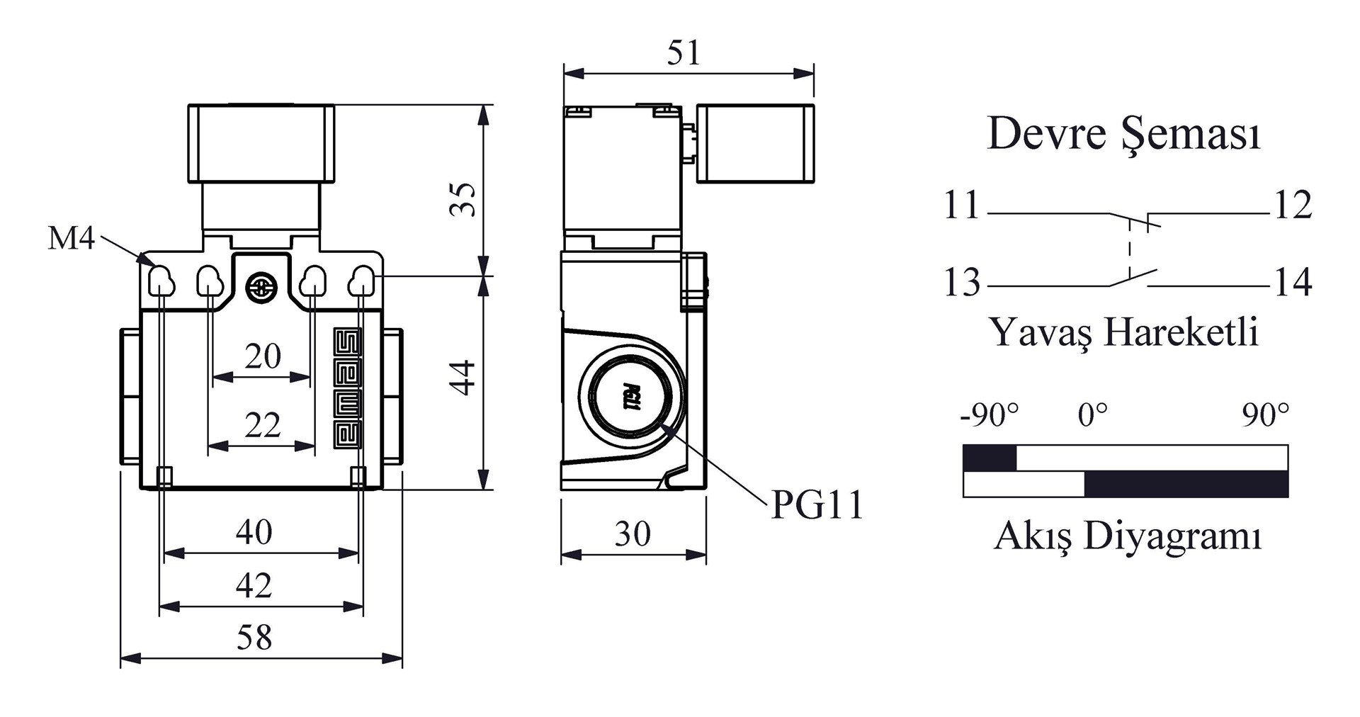 L22 Plastic Body Metal With Flexible Key Safety Switch Slow Action 1NO+1NC Limit Switch