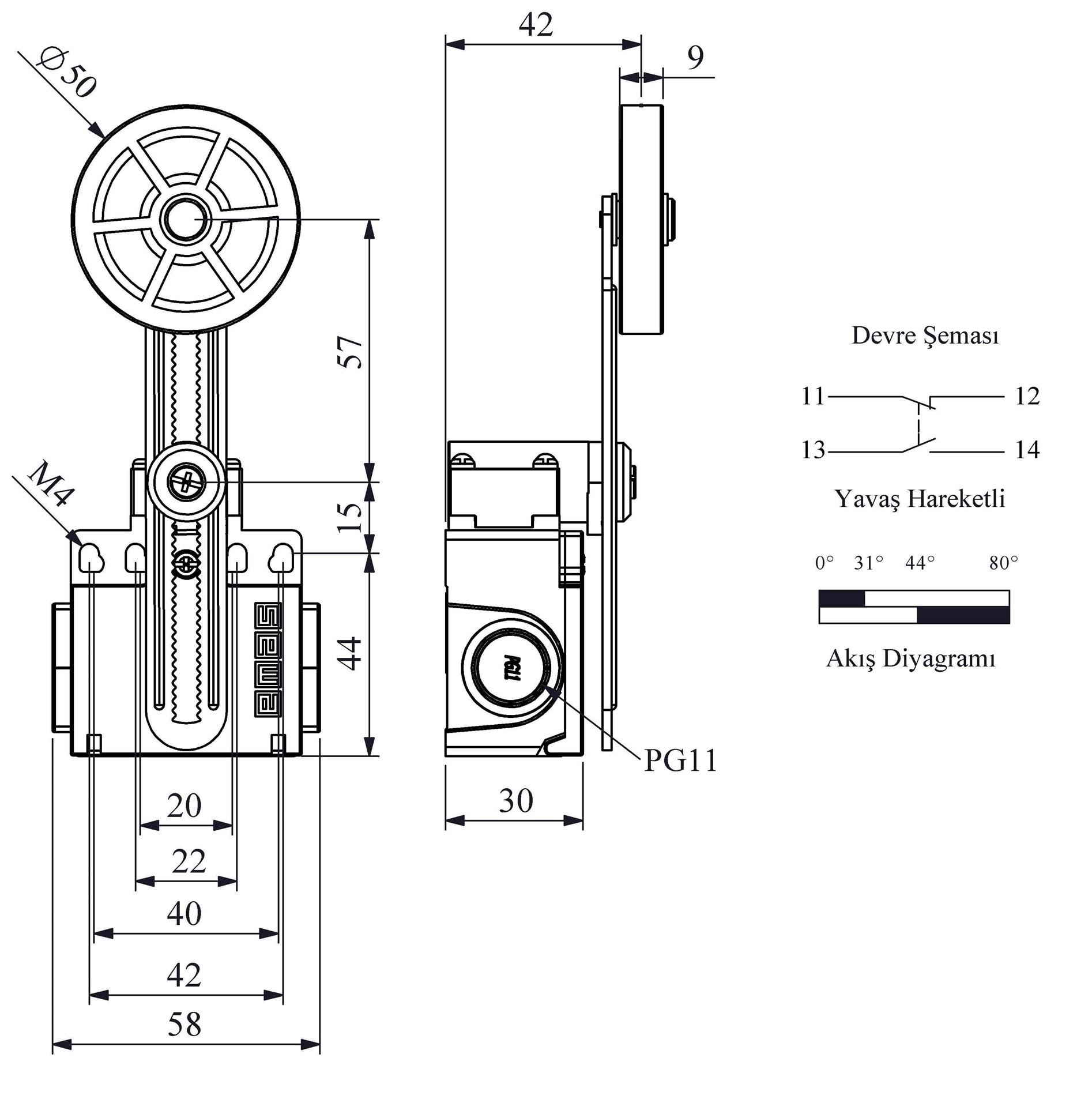 L22 Plastic Body 50 mm Rubber Adjustable Roller Arm Slow Action 1NO+1NC Limit Switch