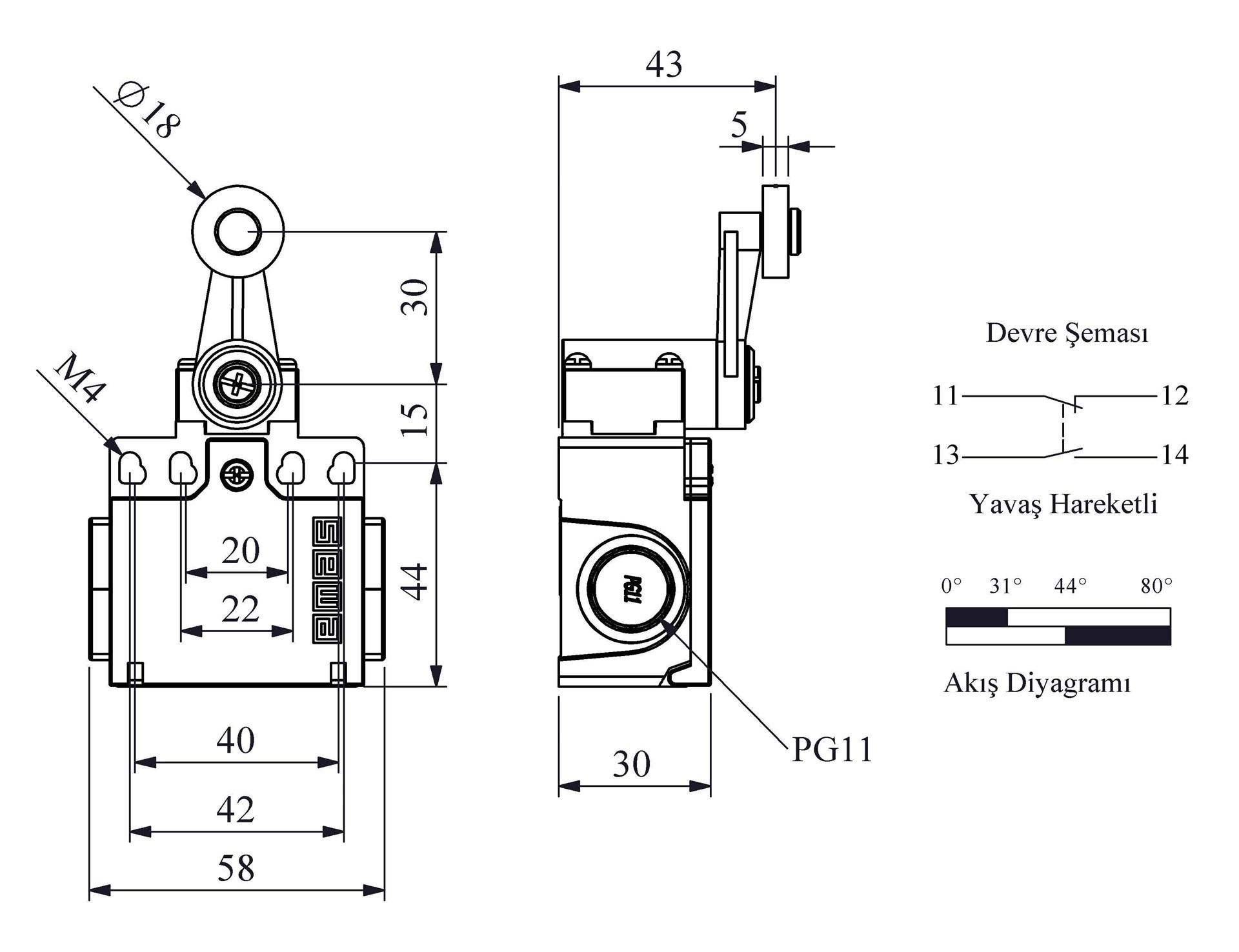 L22 Plastic Body 18 mm Plastic Roller Arm Slow Action 1NO+1NC Limit Switch