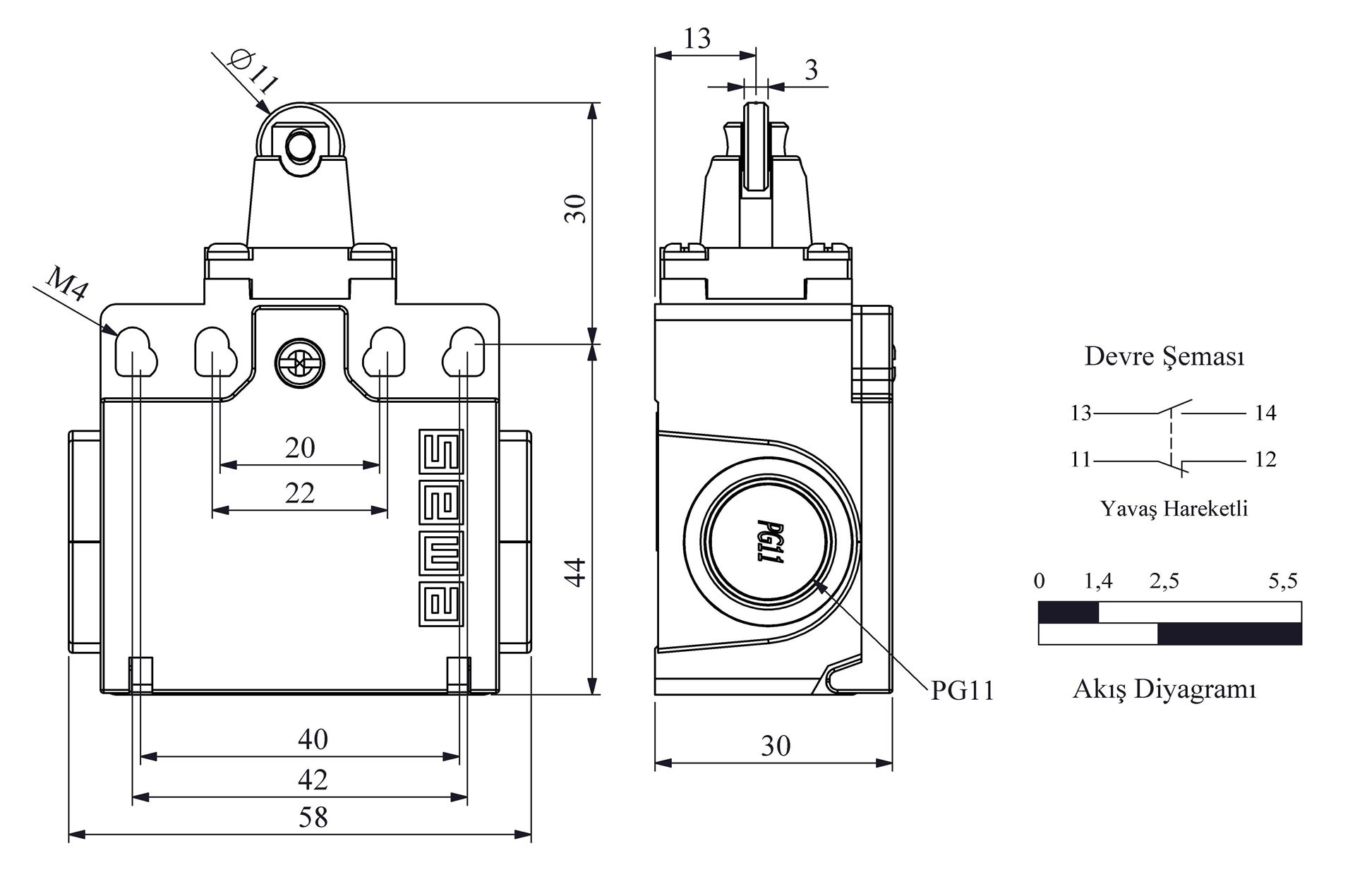L22 Plastic Body 11 mm Metal Roller Plunger Slow Action 1NO+1NC Limit Switch