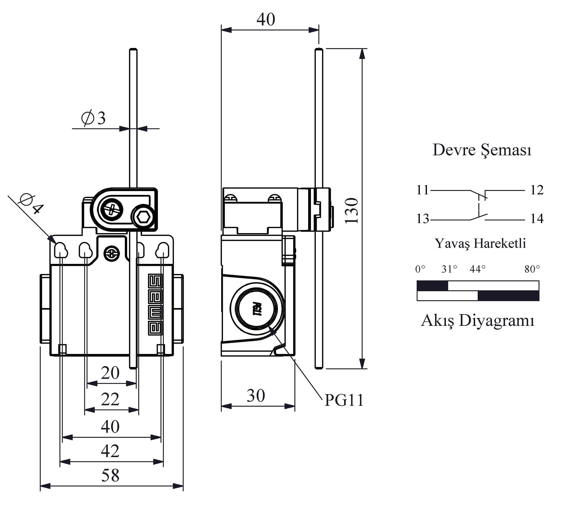 L22 Plastic Body 3 mm Fiber Rod Lever Slow Action 1NO+1NC Limit Switch
