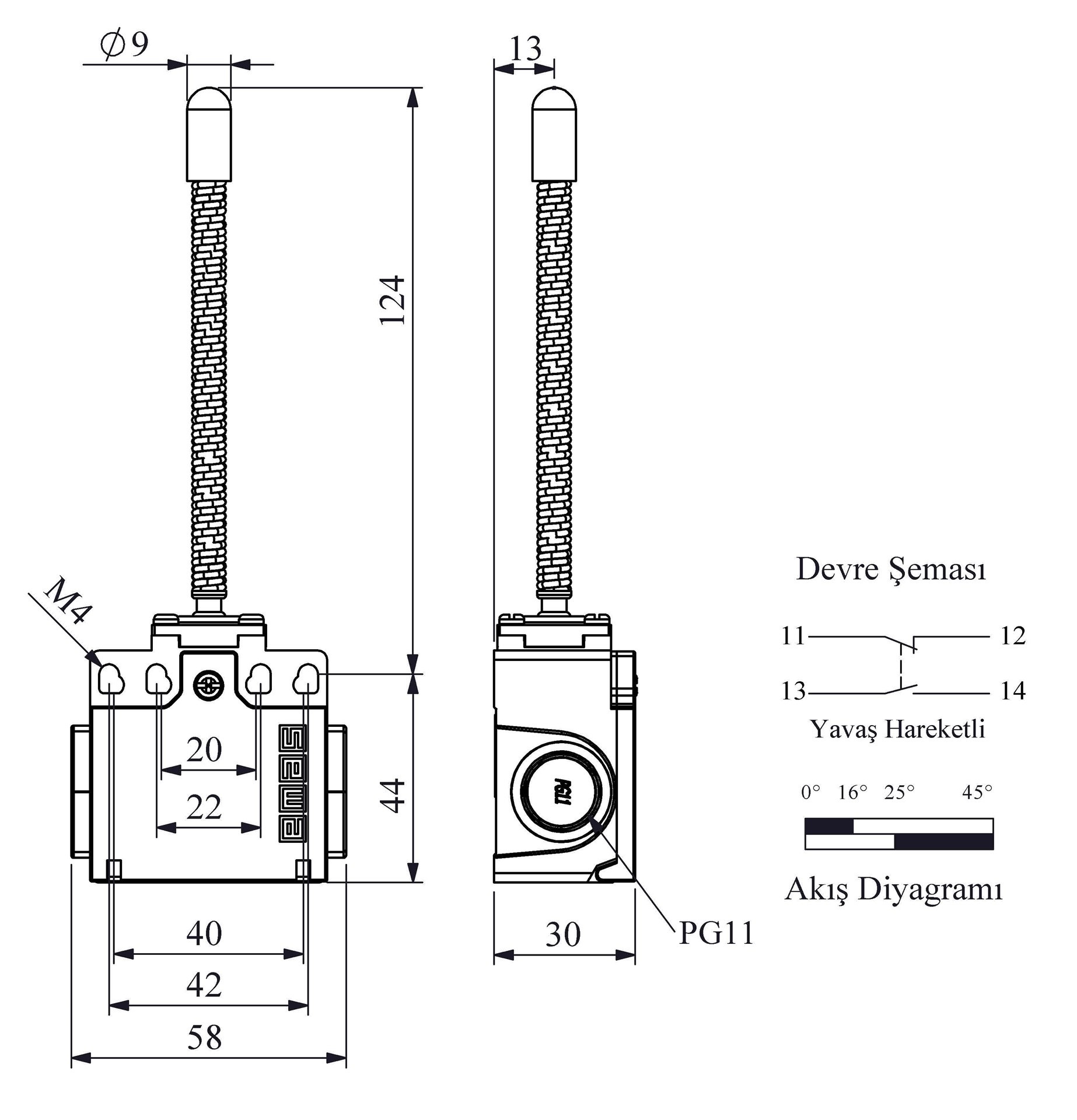 L22 Plastic Body 7 mm Metal Blunt Spring Lever Slow Action 1NO+1NC Limit Switch