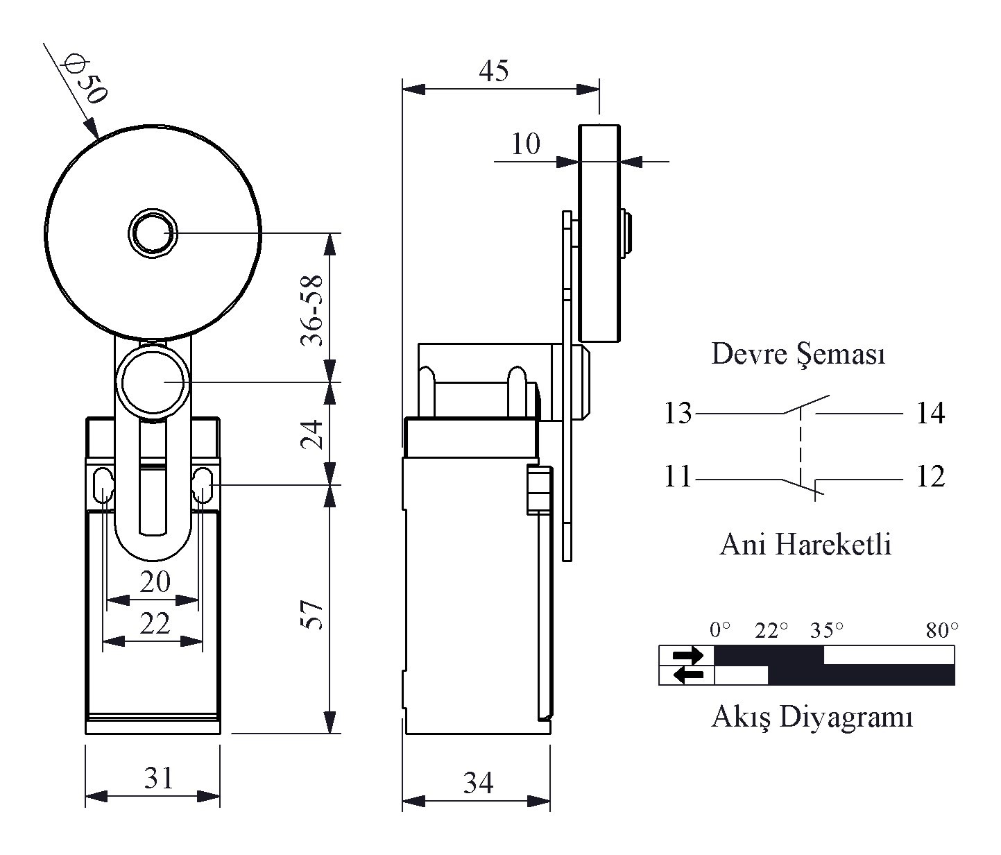 L3 Plastic Body 50 mm Rubber Adjustable Roller Arm Snap Action 1NO+1NC Limit Switch