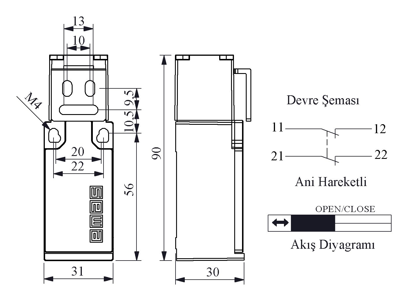 L5 Plastic Body Metal With Right Angle Key Safety Switch Slow Action 2NC Limit Switch
