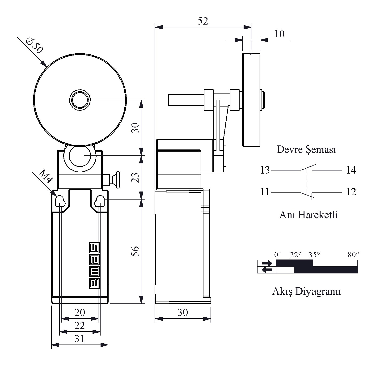 L5 Plastic Body 40 mm Rubber Roller Arm Adjustable and with Reset Roller Snap Action 1NO+1NC Limit Switch