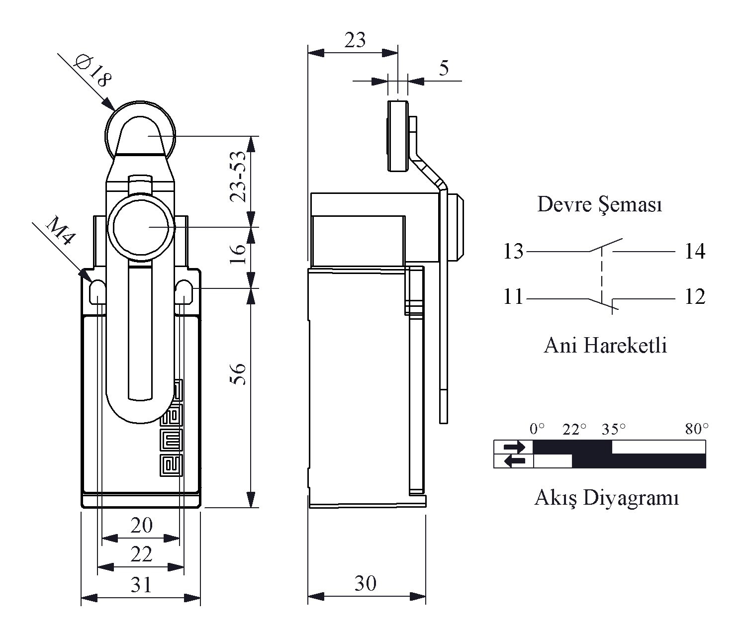 L5 Plastic Body 18 mm Plastic Adjustable Roller Arm Snap Action 1NO+1NC Limit Switch