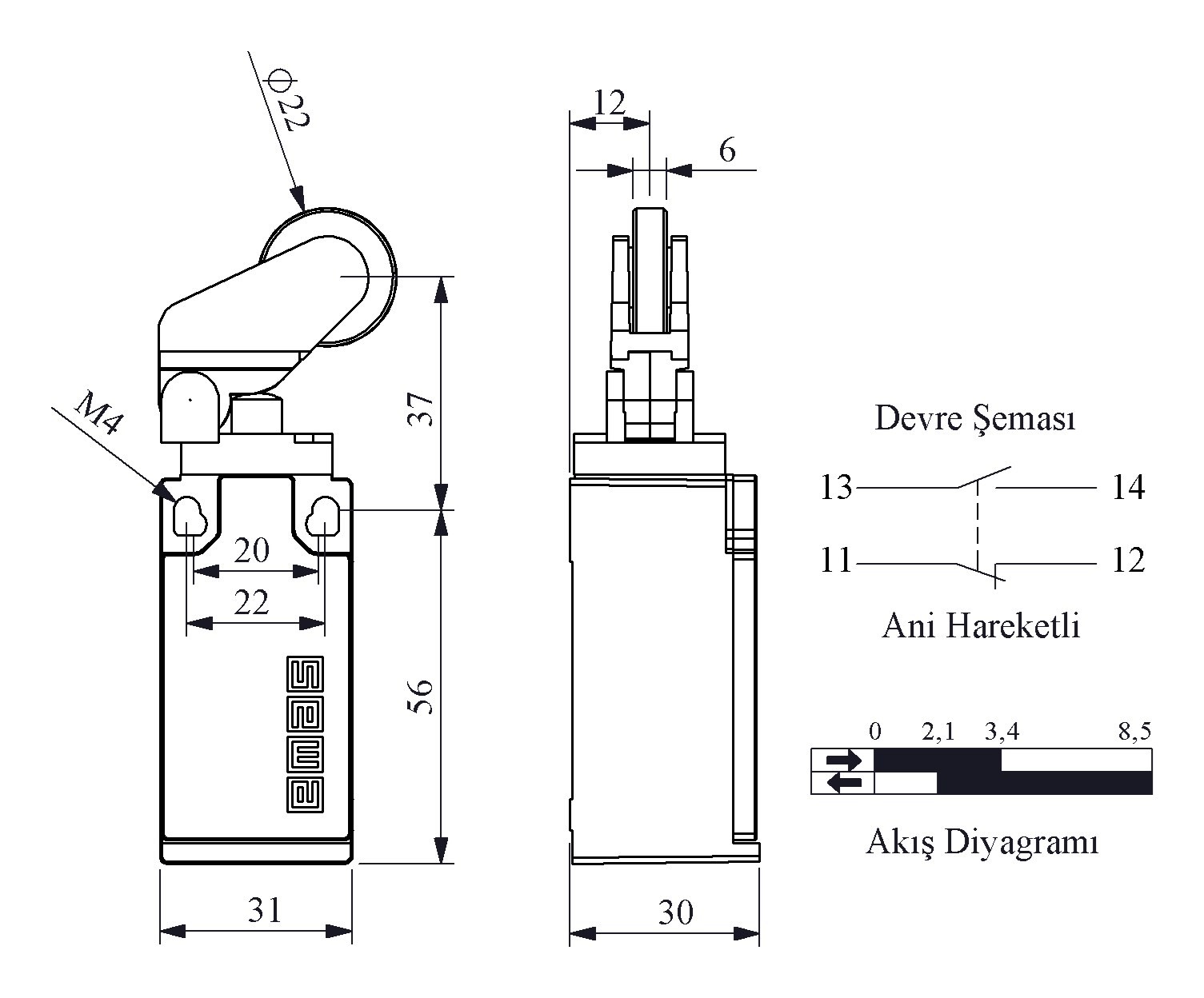 L5 Plastic Body 22 mm Metal Roller Lever Snap Action 1NO+1NC Limit Switch