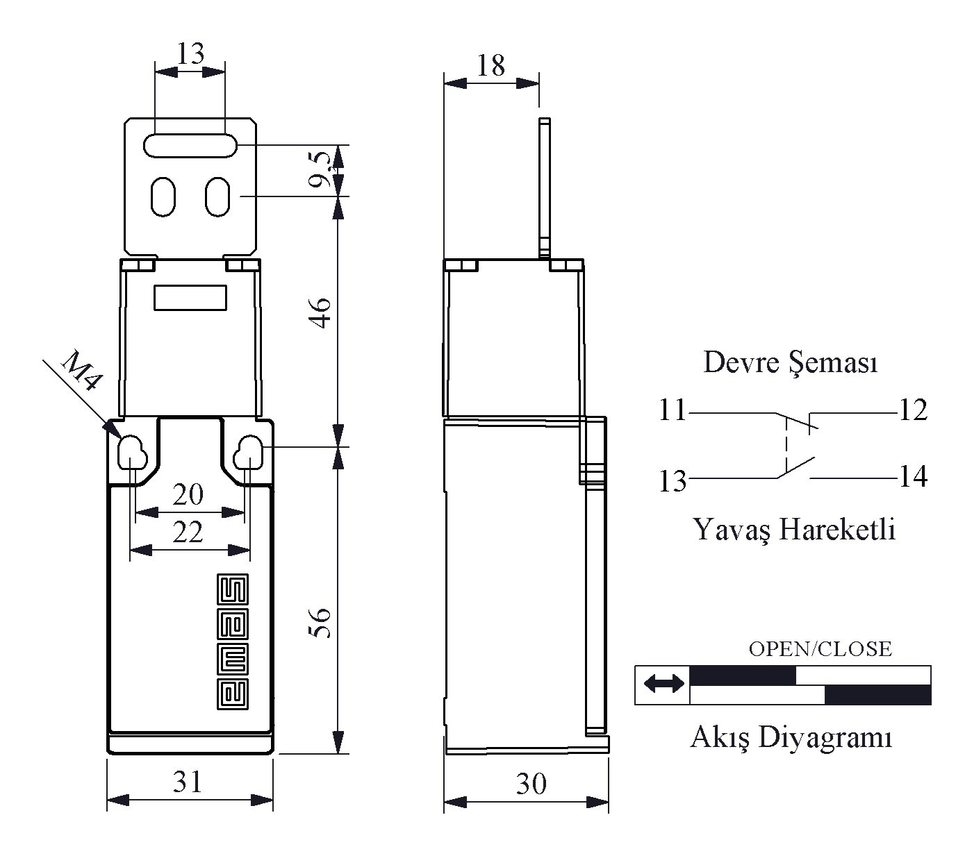 L5 Plastic Body Metal With Flat Key Safety Switch Slow Action 1NO+1NC Limit Switch