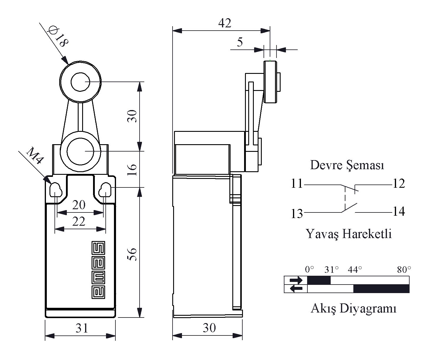 L5 Plastic Body 18 mm Metal Roller Arm Slow Action 1NO+1NC Limit Switch