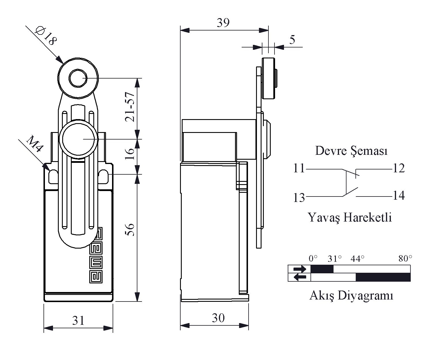 L5 Plastic Body 18 mm Plastic Adjustable Roller Arm Slow Action 1NO+1NC Limit Switch