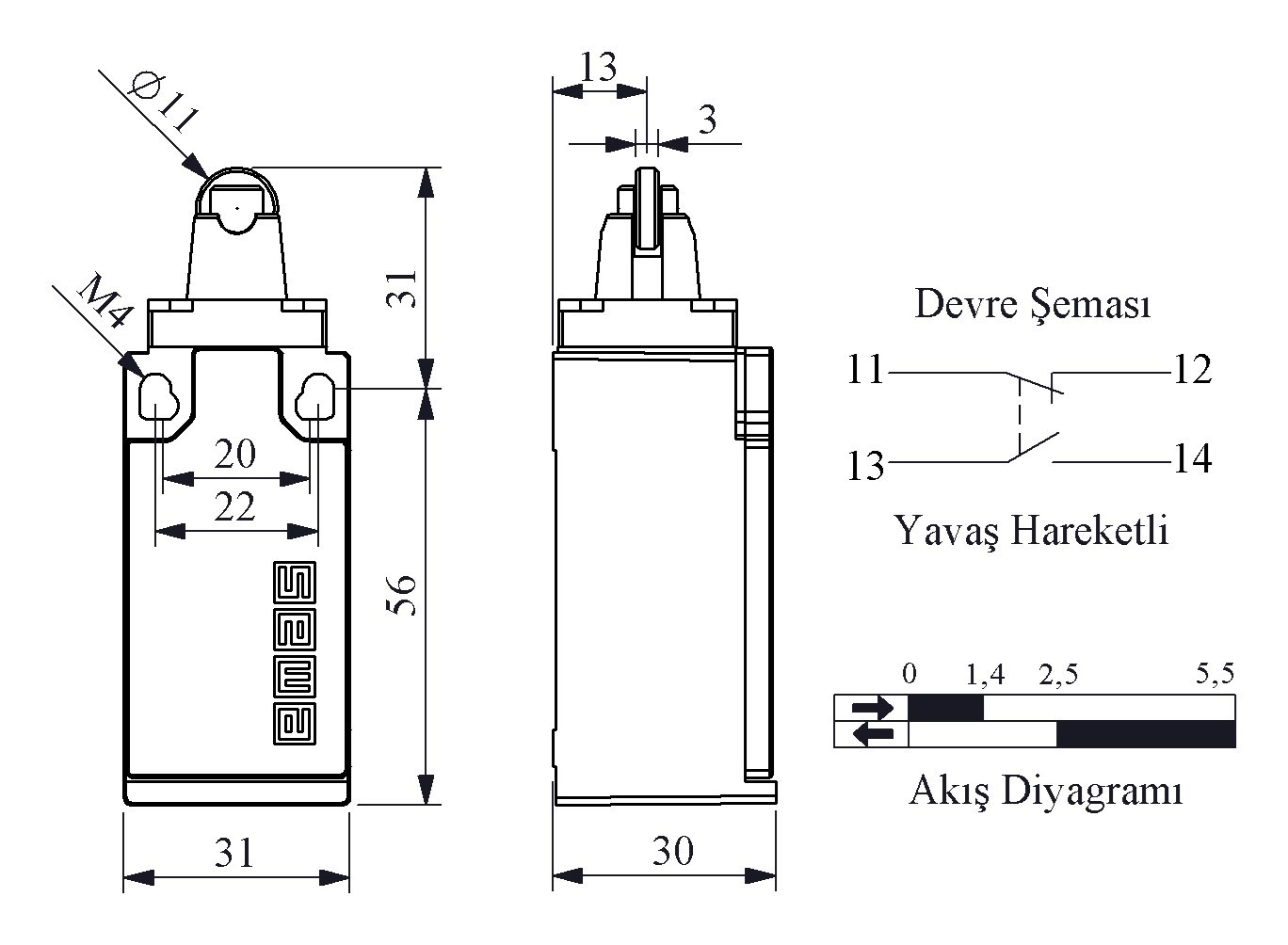 L5 Plastic Body 11 mm Metal Roller Plunger Slow Action 1NO+1NC Limit Switch