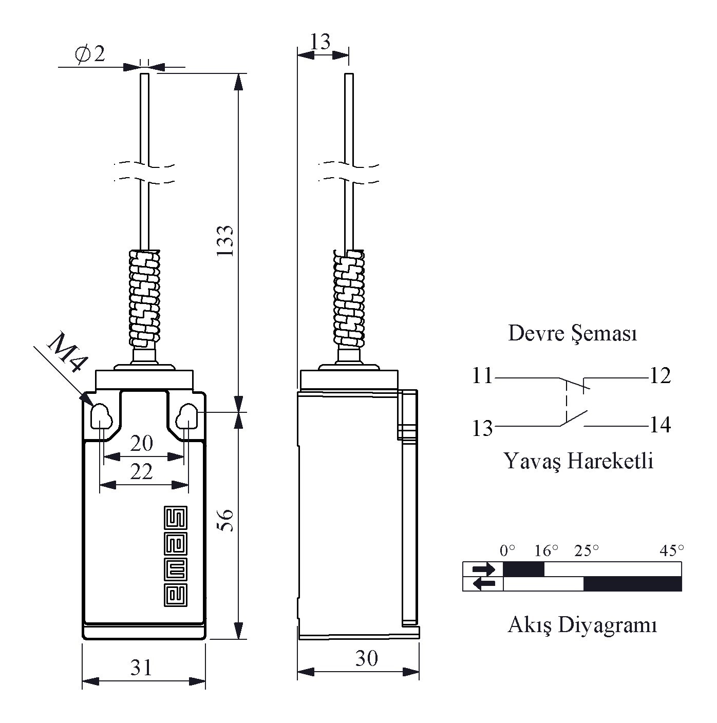 L5 Plastic Body 2 mm Metal Spike Spring Lever Slow Action 1NO+1NC Limit Switch