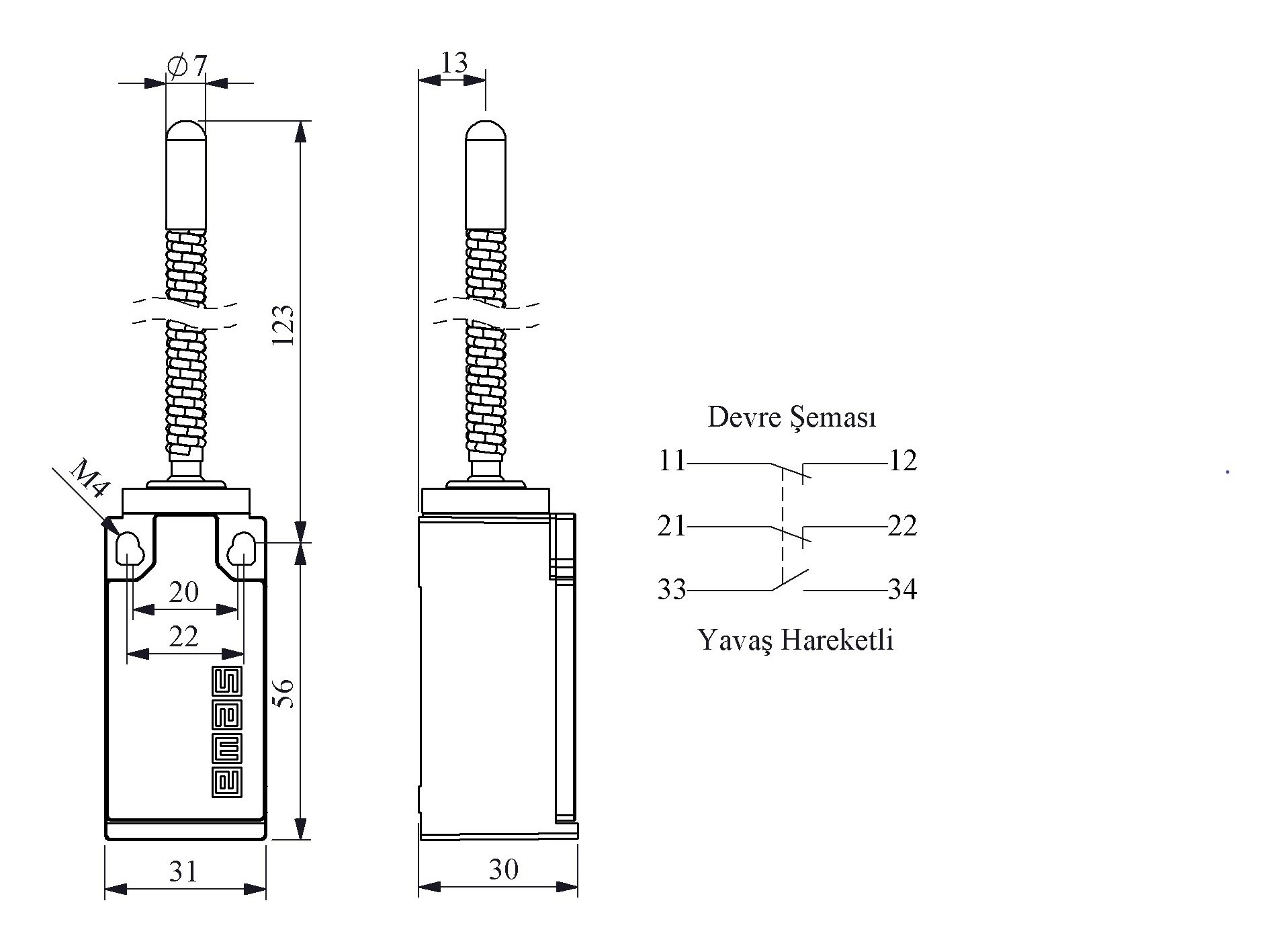 L5 Plastic Body 7 mm Metal Blunt Spring Lever Slow Action 1NO+2NC Limit Switch