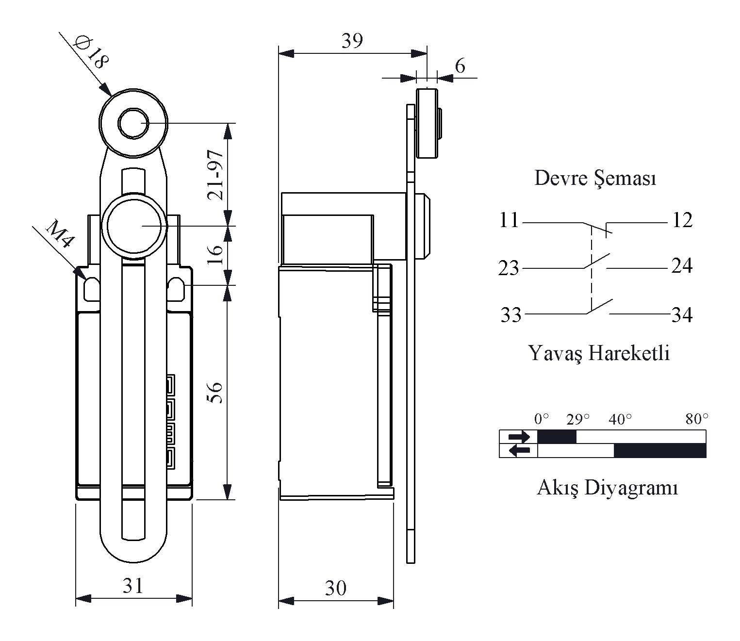 L5 Plastic Body 18 mm Metal Adjustable Roller Arm Slow Action 2NO+1NC Limit Switch