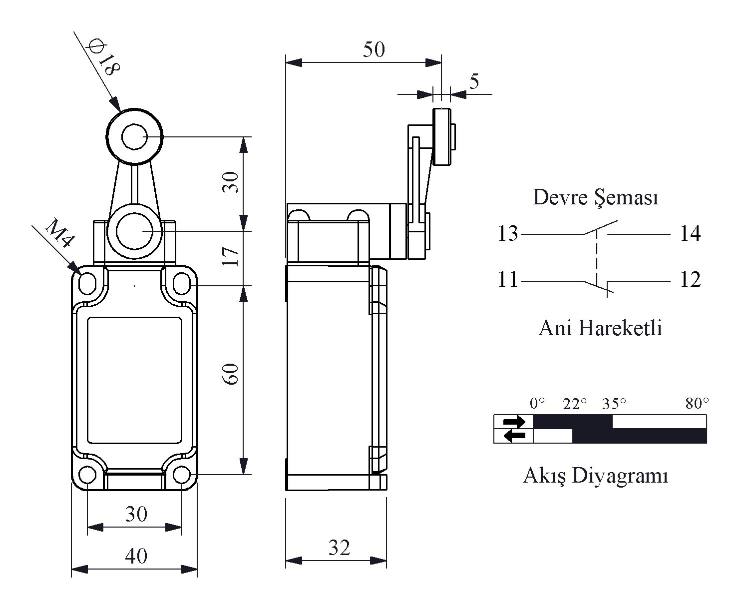 L52 Metal Body 18 mm Metal Roller Arm Snap Action 1NO+1NC Limit Switch