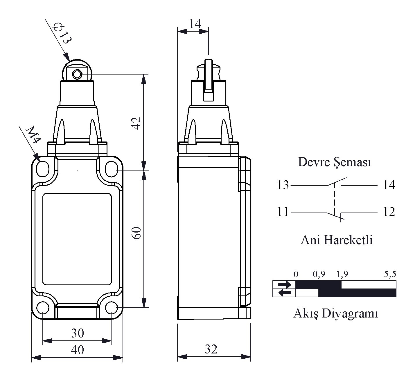 L52 Metal Body 13 mm Metal Roller Plunger Snap Action 1NO+1NC Limit Switch
