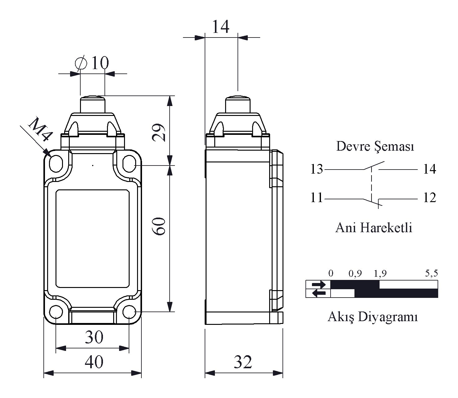 L52 Metal Body 10 mm Metal Plunger Snap Action 1NO+1NC Limit Switch