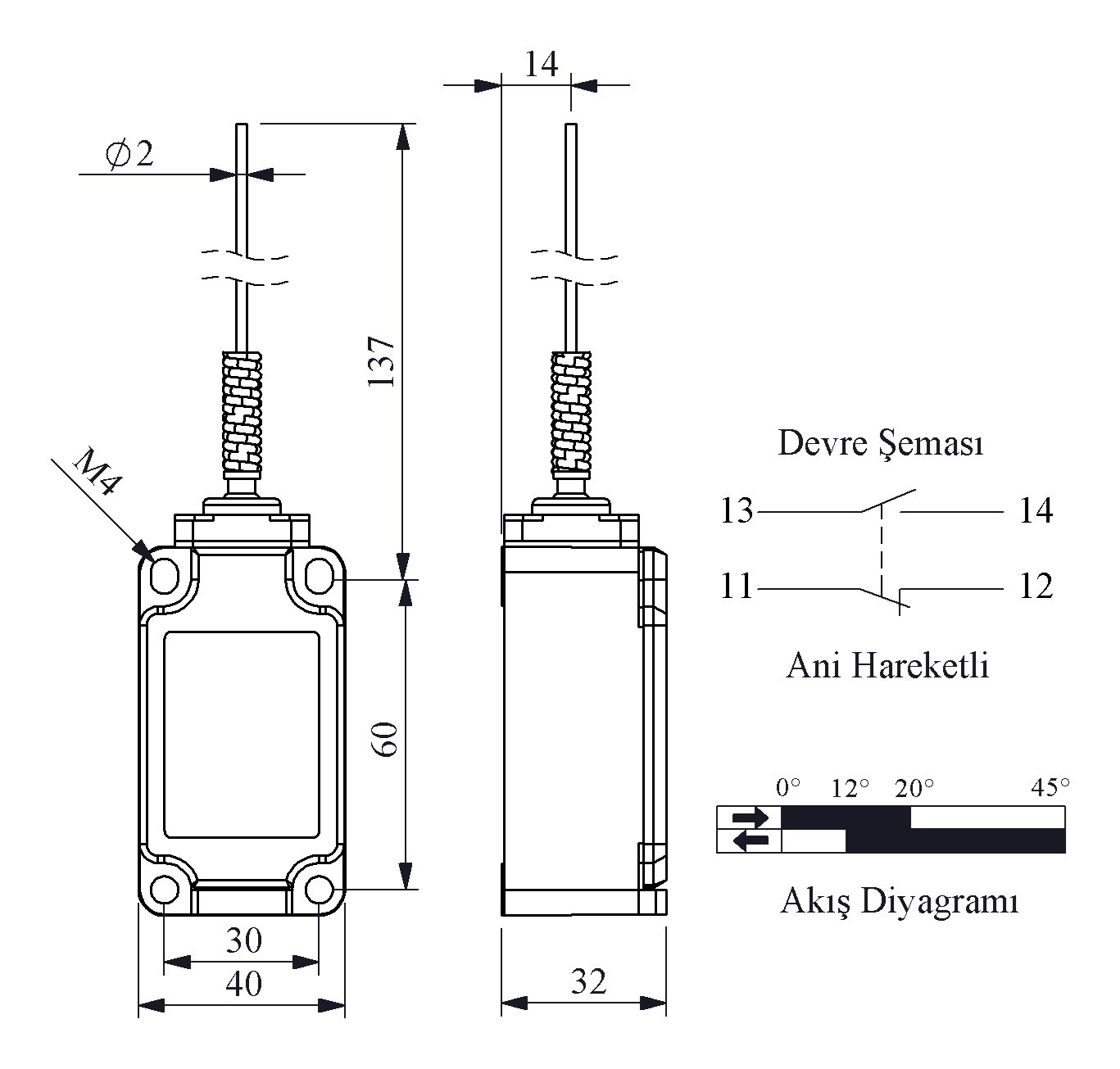 L52 Metal Body 2 mm Metal Spike Spring Lever Snap Action 1NO+1NC Limit Switch