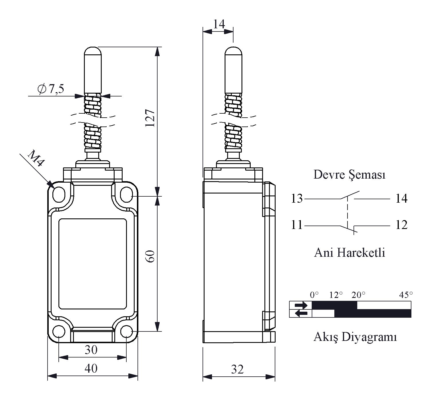 L52 Metal Body 7 mm Metal Blunt Spring Lever Snap Action 1NO+1NC Limit Switch