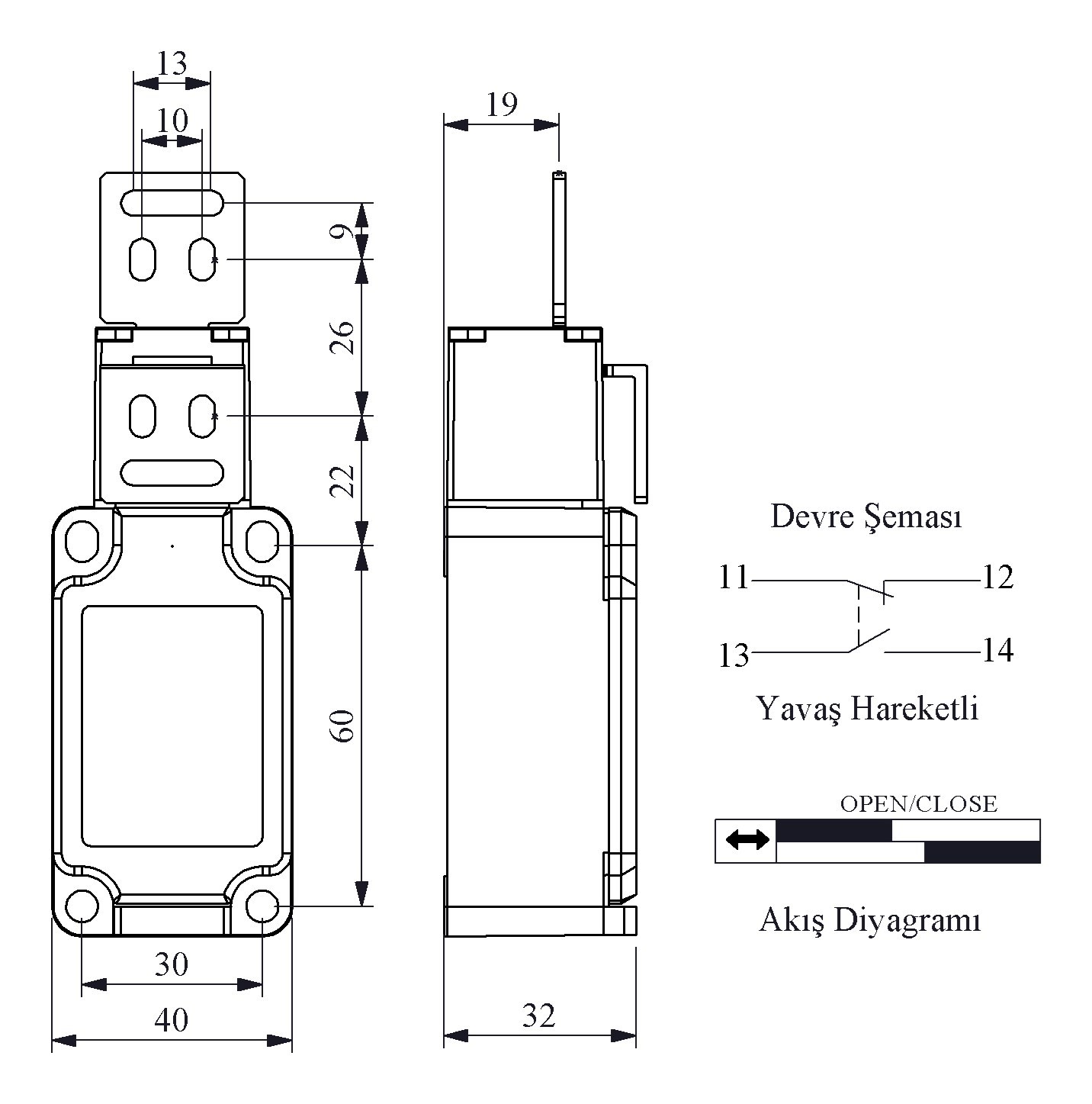 L52 Metal Body Metal With Right Angle+Flat Key Safety Switch Slow Action 1NO+1NC Limit Switch