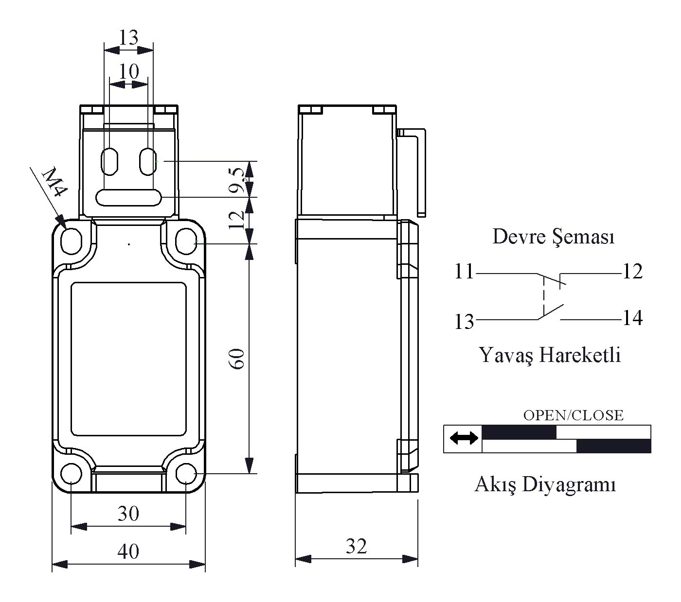 L52 Metal Body Metal With Right Angle Key Safety Switch Slow Action 1NO+1NC Limit Switch