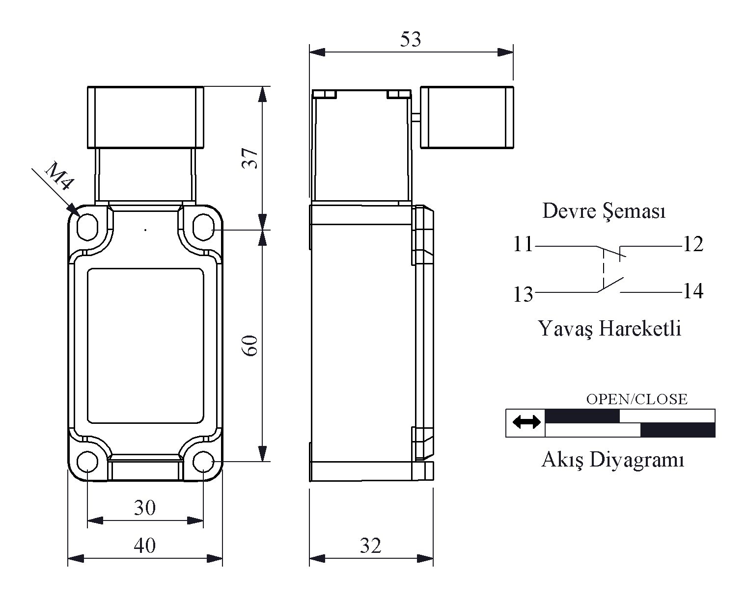 L52 Metal Body Metal With Flexible Key Safety Switch Slow Action 1NO+1NC Limit Switch