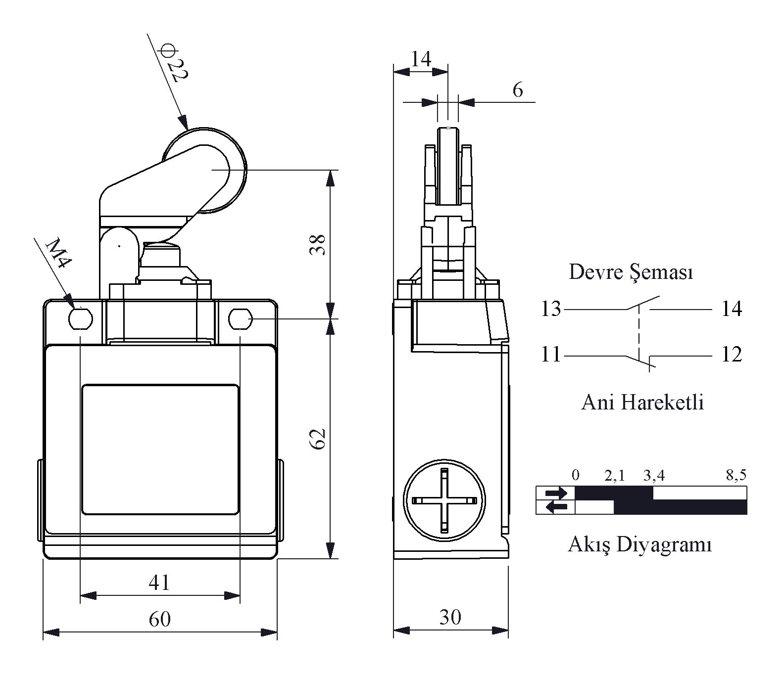 L53 Metal Body 22 mm Metal Roller Lever Snap Action 1NO+1NC Limit Switch
