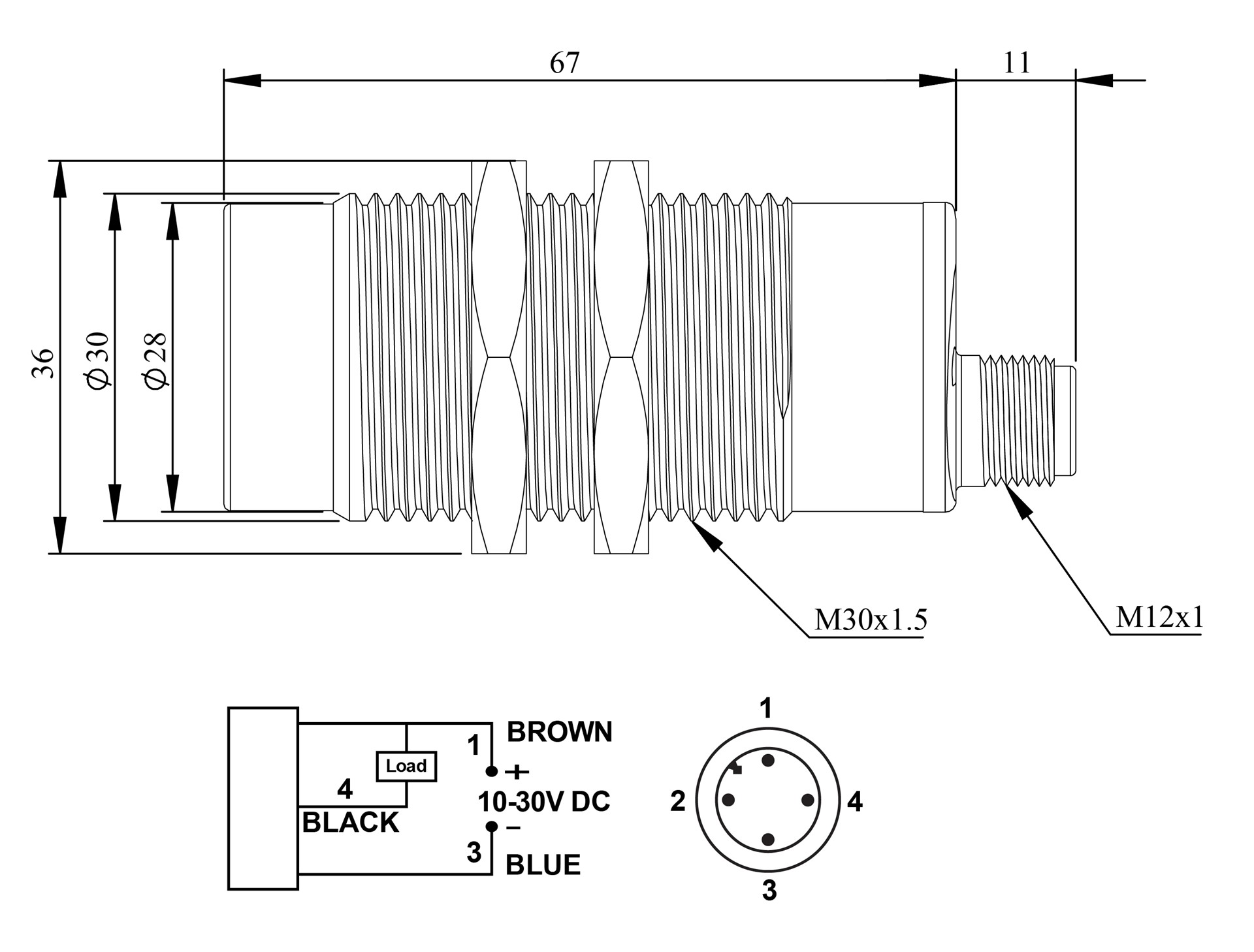 Metal Nonflush NPN-NO 15mm M12 Connector M30 Inductive Sensor